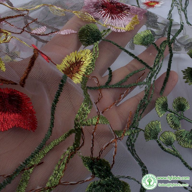 Grass Flower Tulle Embroidery Lace Fabric Floral Curtain Gard Wedding Dressing sold by the Yard (91.5cm)